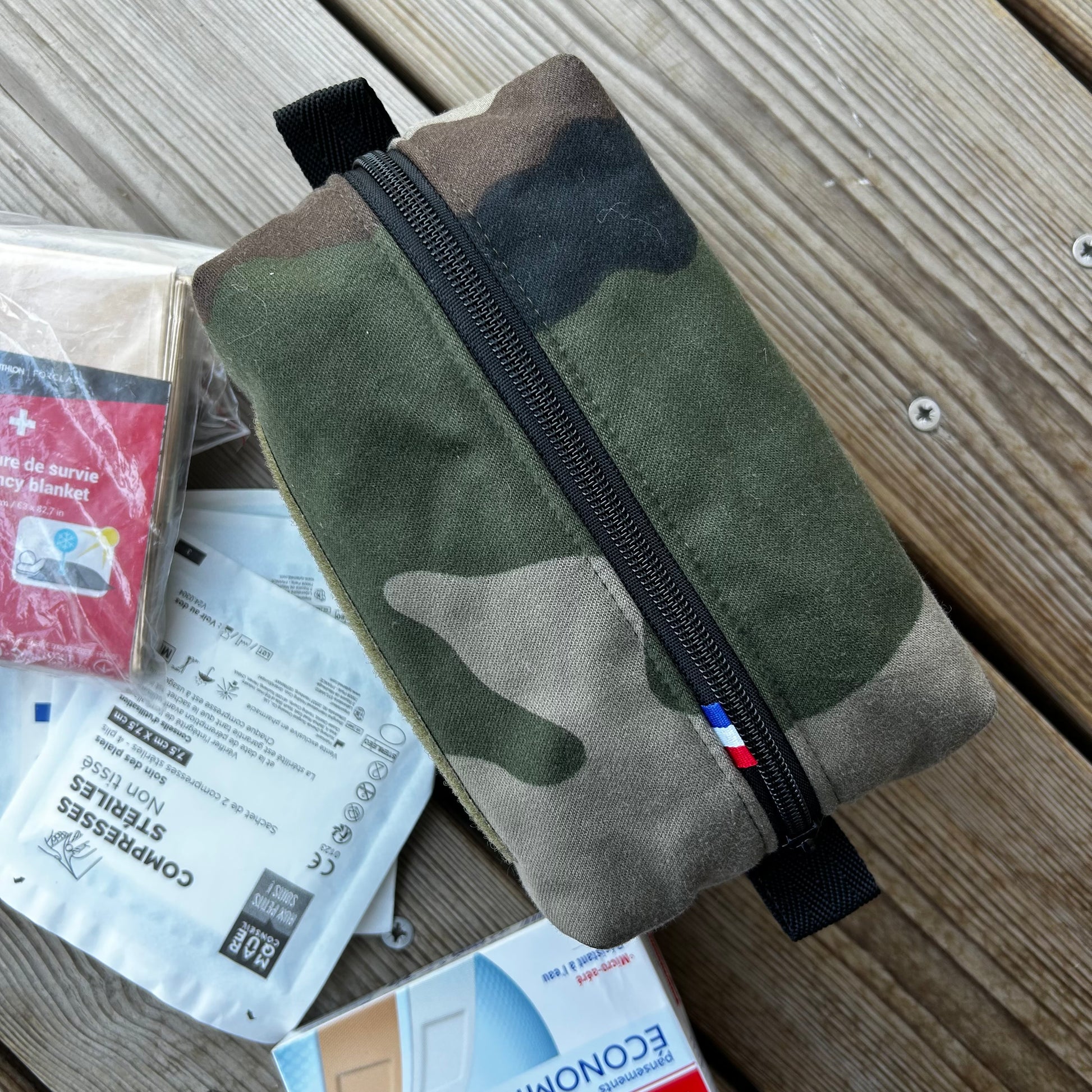 Chaque trousse le mili lab est fabriquĂ©e Ă la main Ă Grenoble, Ă partir de tissus dâuniformes militaires, de police ou de secours soigneusement rĂ©cupĂ©rĂ©s et transformĂ©s.