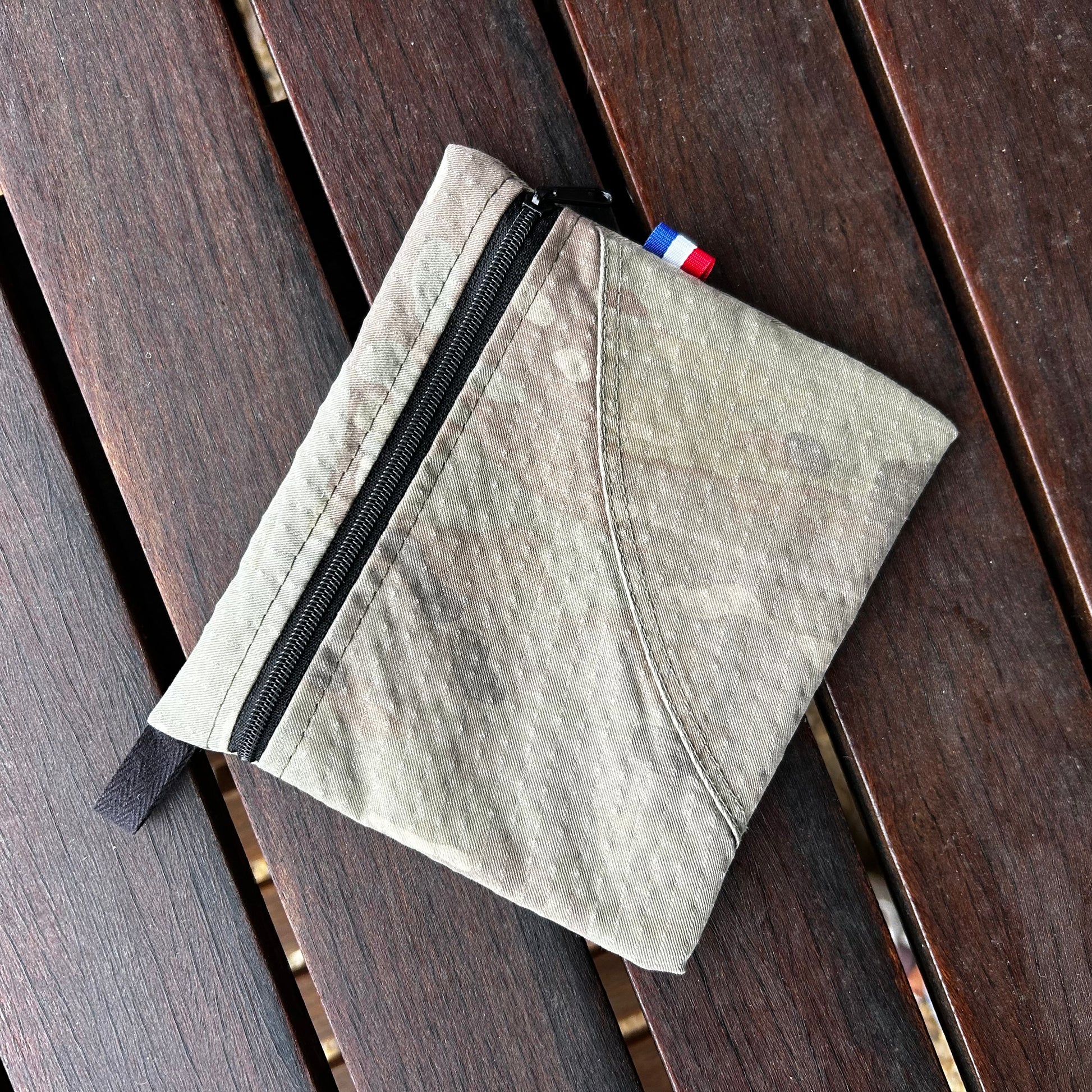 Chaque porte monnaie le mili lab est fabriquĂ© Ă la main Ă Grenoble, Ă partir de tissus dâuniformes militaires, soigneusement rĂ©cupĂ©rĂ©s et transformĂ©s.